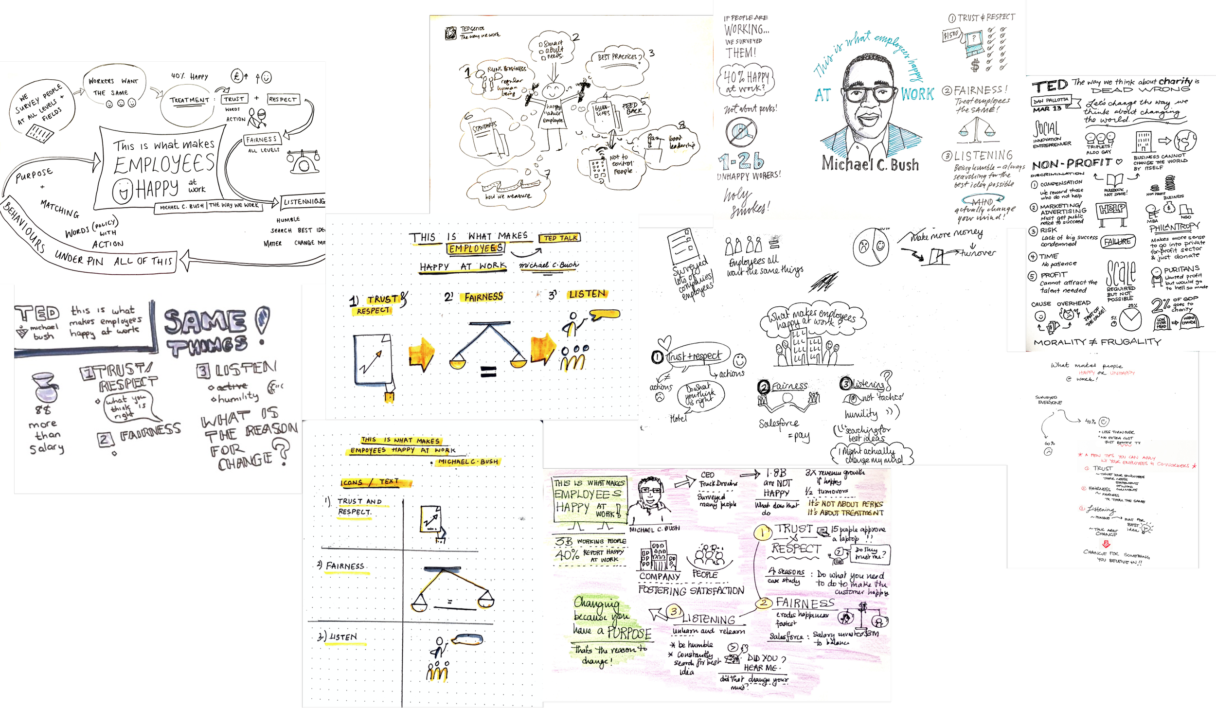 Sketchnotes from participants of the 18-minute video are displayed below.