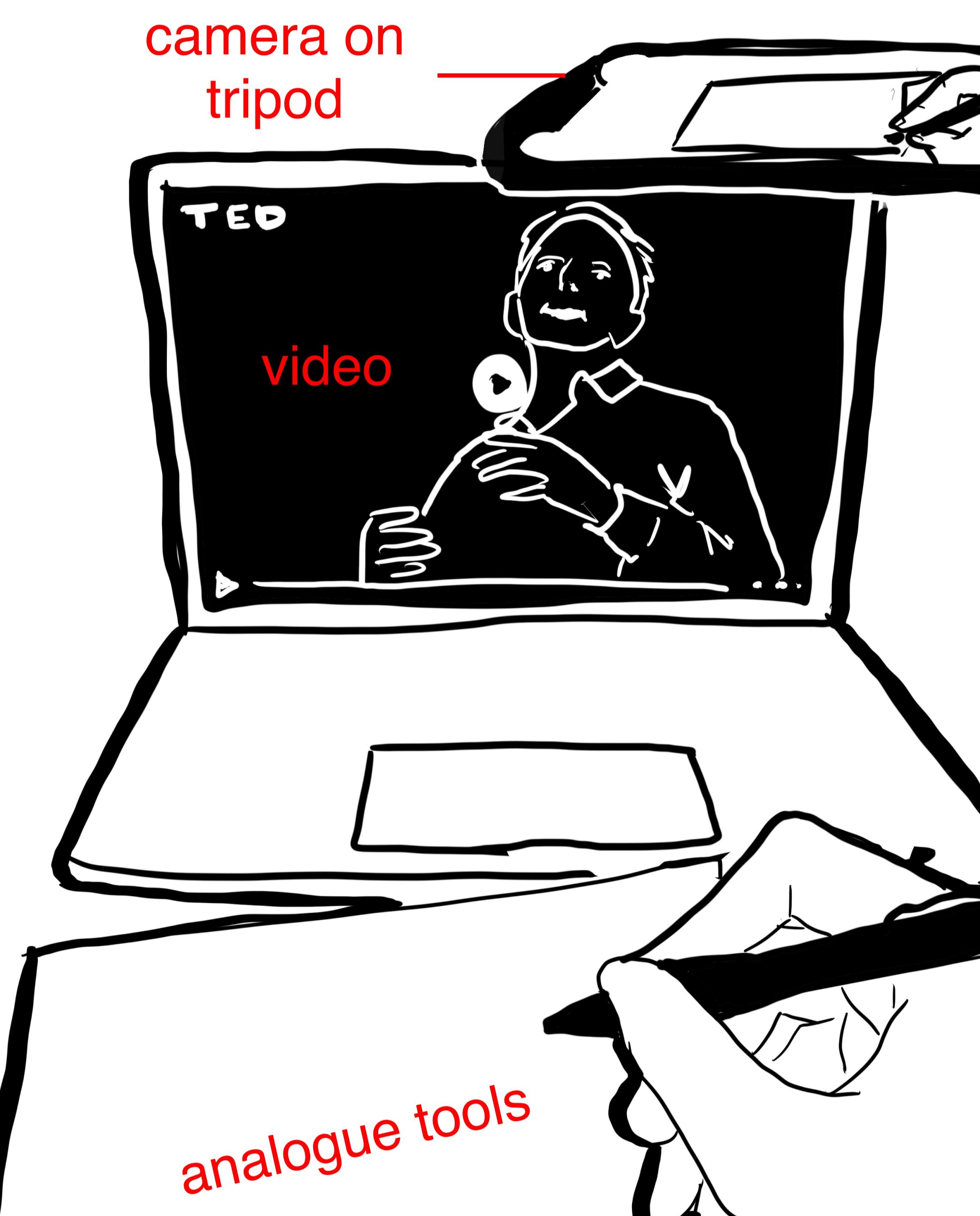 We recorded ten participants use analog tools (e.g., pens, paper, pencil) as they took visual notes for two video presentations, respectively four minutes and 19 minutes long.